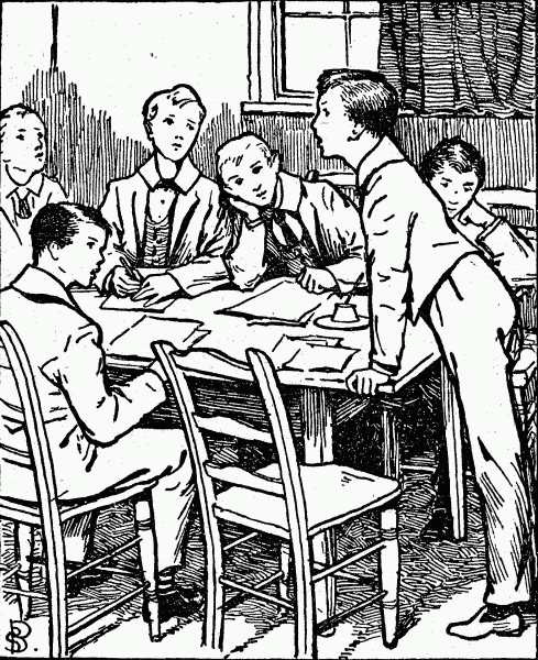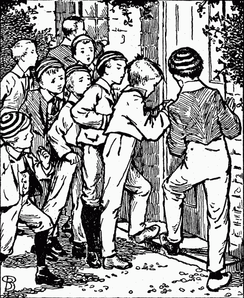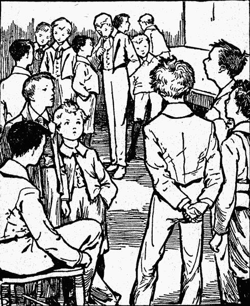 "It's just what I expected," said Norman Hallett, a tall, well-built boy, who was the eldest in the school. "Once open the door—only a chink—and in pours the whole town." He waved a half-eaten crust to illustrate the pouring in.[Pg 9]