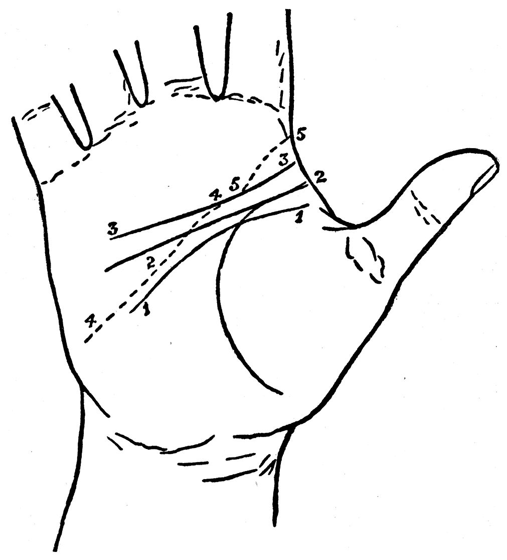 The best time for examining hands is during the day, first because the light is better and, above all, because the circulation of the blood does not redden the entire palm as it does at night, and the finer lines can consequently easily be detected.