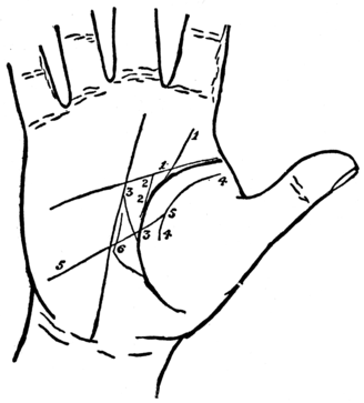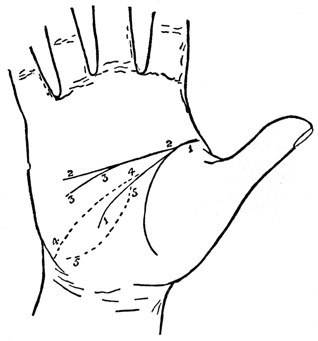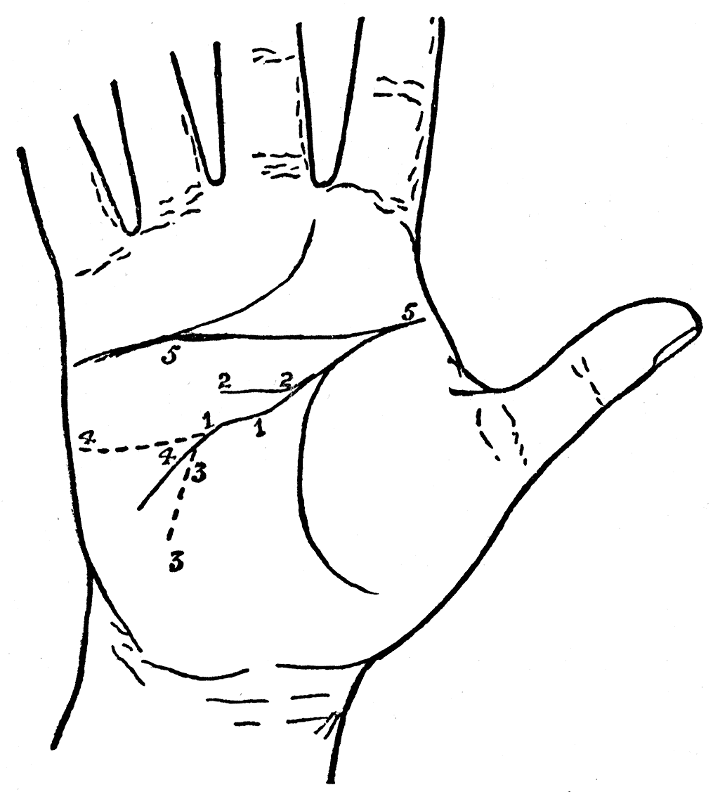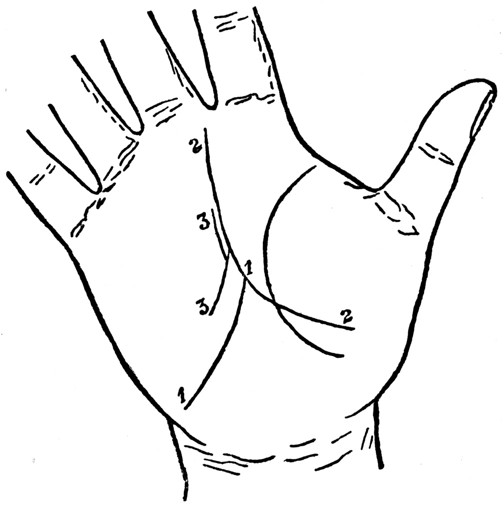 As I described earlier in these pages, the right and left hands should be examined together to note what difference there may be in the shape and position of the lines, but the markings on the right hand are the only ones to be relied on.
