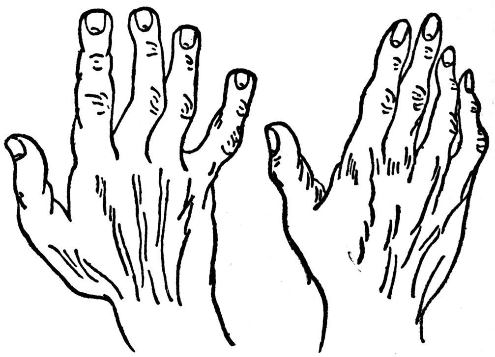 When all the fingers (especially if the fingers be long) are seen always clinging, sticking, as it were, or folding over one another it denotes very doubtful qualities in the nature of their possessor and a decided tendency towards thieving and general lack of moral principal.