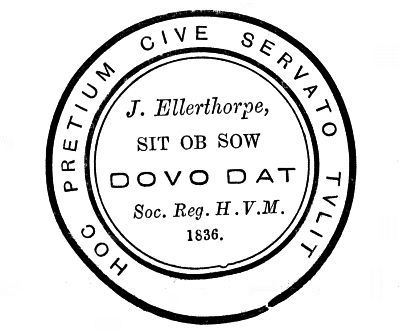 'Presented to John Ellerthorpe in Acknowledgment of his repeated Acts of Gallantry in Saving Life. 1861.'