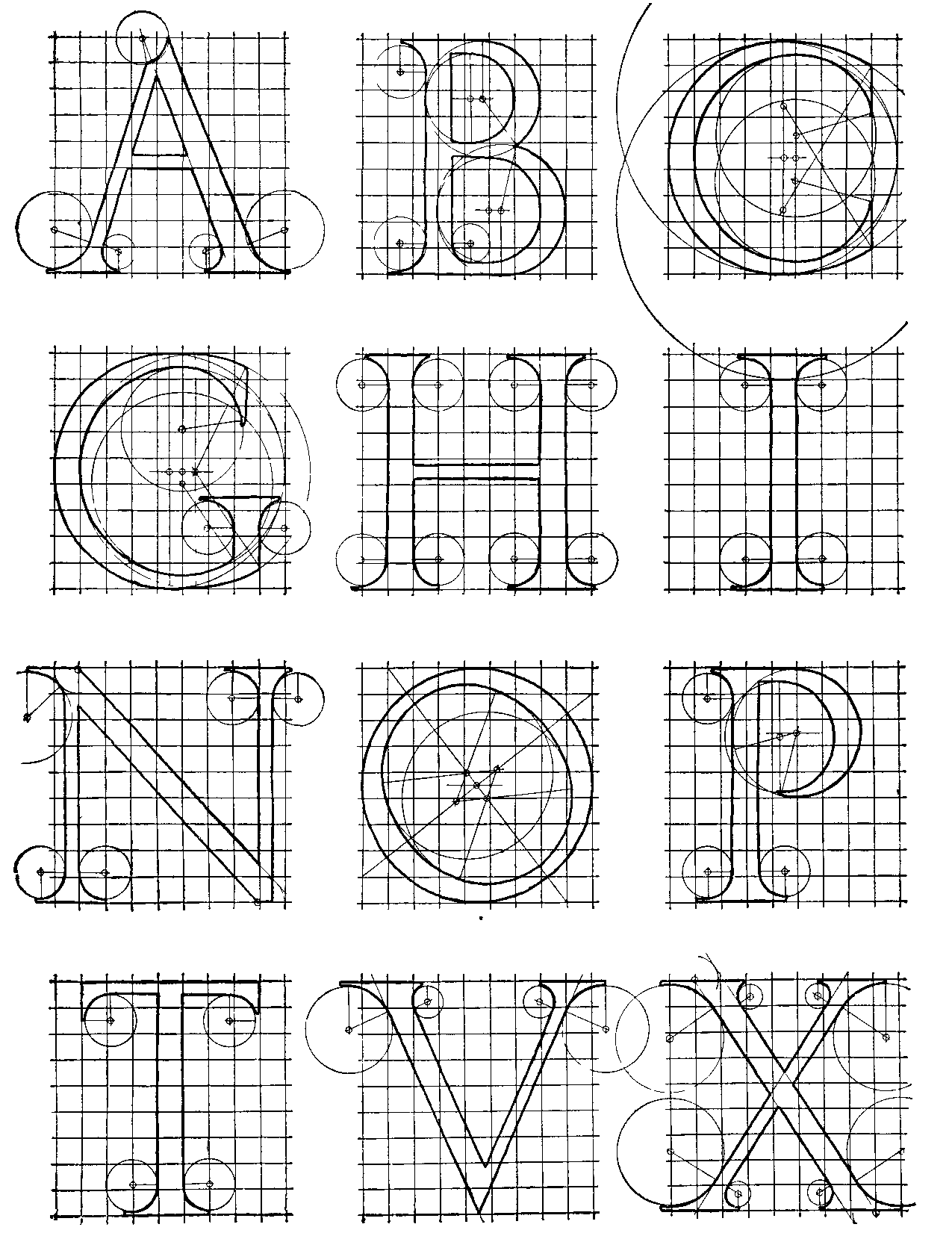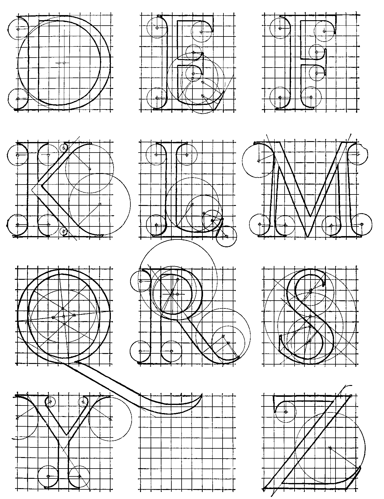 37 and 38 German Renaissance Capitals. By Albrecht Dürer. Adapted from 'Underweyssung der messung, mit dem zirckel, ũn richtscheyt, in Linien, etc.' (Nuremberg, 1525)