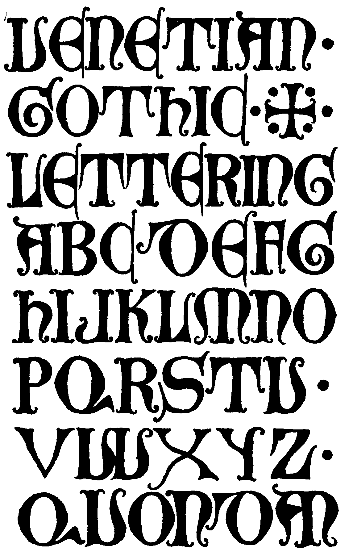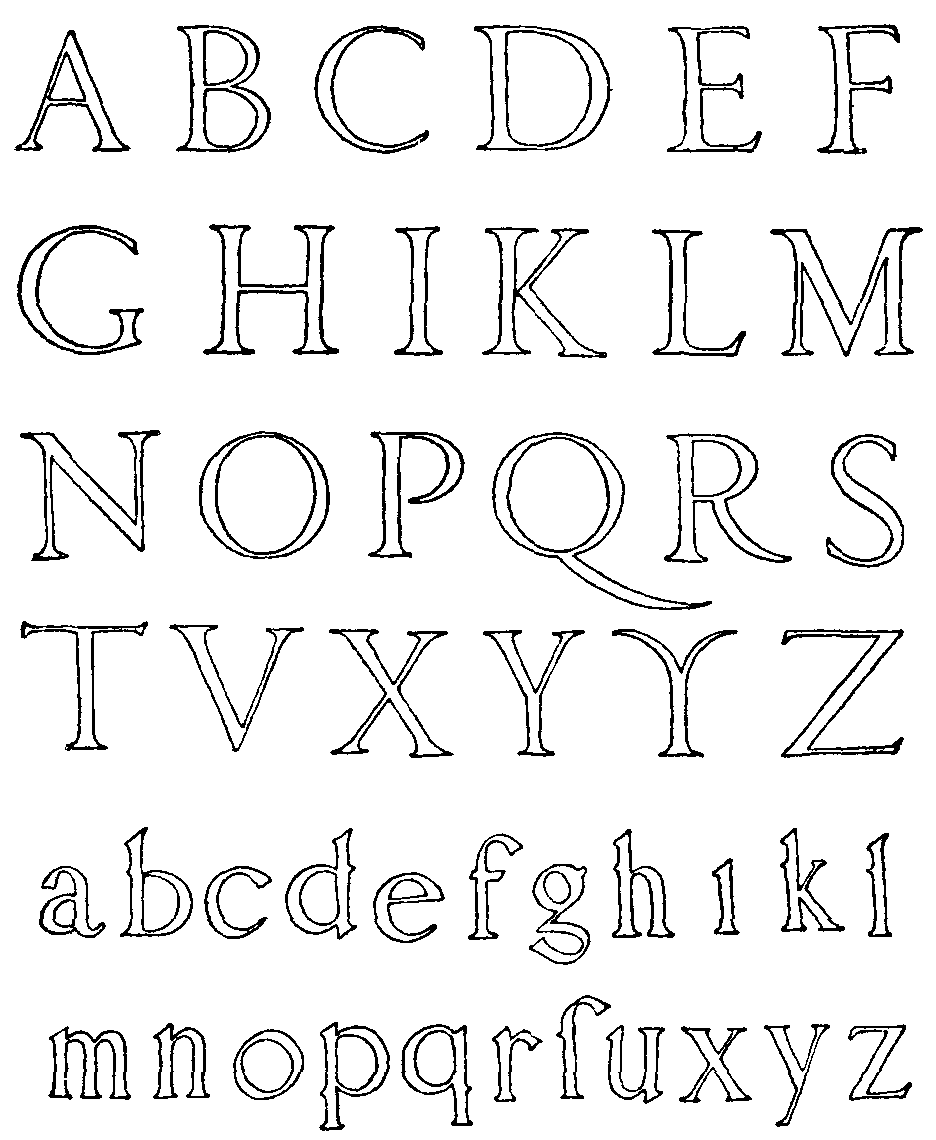The alphabets illustrated, while primarily intended to exhibit the letter shapes, have in most cases been so arranged as to show also how the letters compose into words, except in those instances where they are intended to be used only as initials. The application of classic and medieval letters to modern usages has been, as far as possible, suggested by showing modern designs in which similar forms are employed.