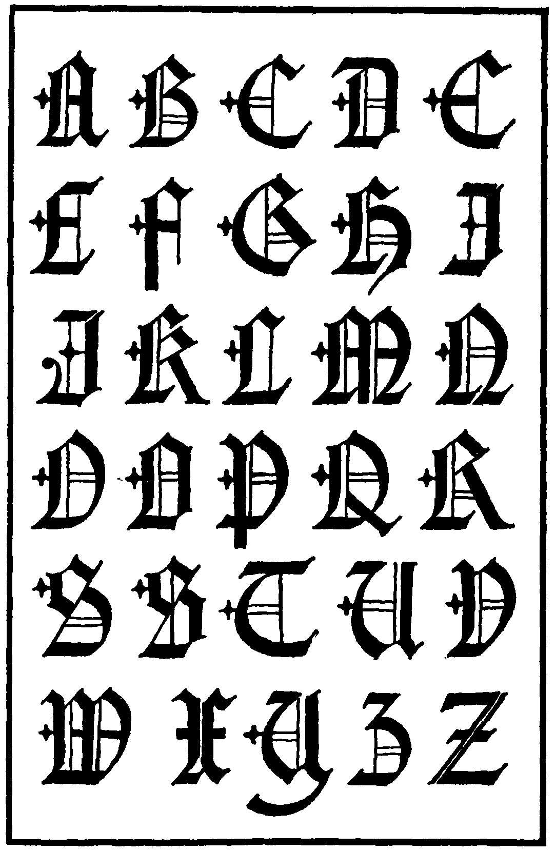 41 German Renaissance Capitals. By Urbain Wÿss. From 'Libellus valde doctus ... scribendarum literarum genera complectens.' (Zurich, 1549)