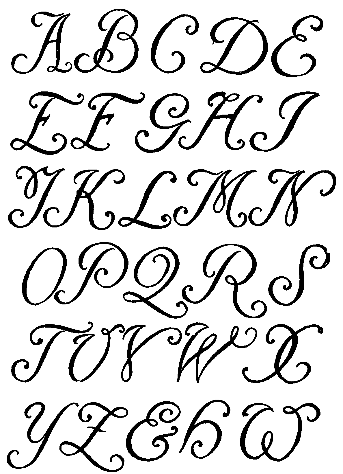 52 Spanish Roman Pen Drawn Letters. By Francisco Lucas. From 'Arte de Escrēvirde.' (Madrid, 1577)