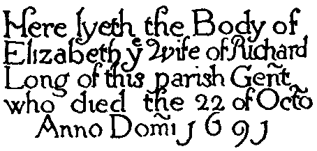 60 Inscription from English 17th Century Tombstone. From slate tombstone at Chippenham, England. 1691. F. C. B.