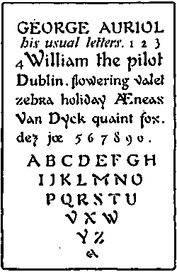83 Modern French Lettered Page in "Cursive." By George Auriol. From 'Le Premier Livre des Cachets, etc.' (Librairie Centrale des Beaux-Arts, Paris, 1901)