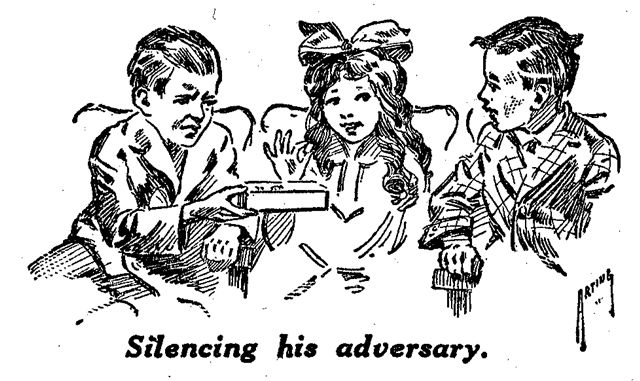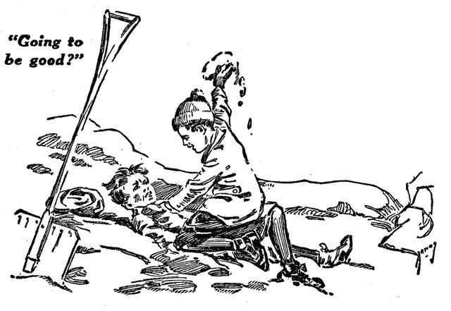 "Never mind who. Promise not to do it any more or I'll—" He clenched one fist and drew it back threateningly.