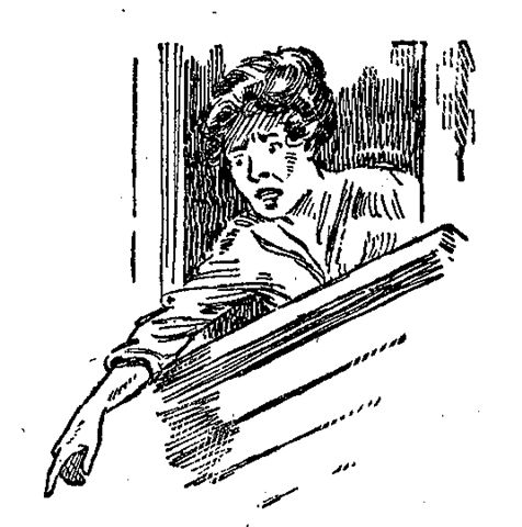 At this moment, the very cause of the dissension came skipping along with the inevitable package from the grocery under one arm. Feminine intuition told her that trouble was lurking in the air, and she would have passed but John held up a detaining hand.