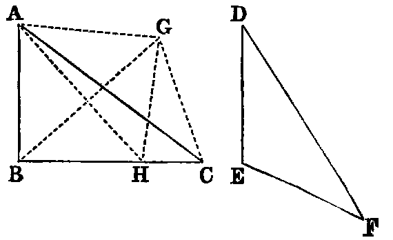 In the following work, when figures are not drawn, the student should construct them from the given directions. The Propositions of Euclid will be printed in larger type, and will be referred to by Roman numerals enclosed in brackets. Thus [III. xxxii.] will denote the 32nd Proposition of the 3rd Book. The number of the Book will be given only when different from that under which the reference occurs. The general and the particular enunciation of every Proposition will be given in one. By omitting the letters enclosed in parentheses we have the general enunciation, and by reading them, the particular. The annotations will be printed in smaller type. The following symbols will be used in them:—