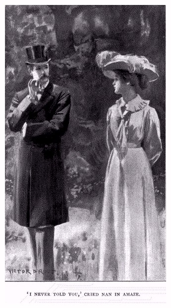 “Friendship! Oh yes, but not,”—Nan gulped over the word in wild embarrassment—“the other thing! It’s too soon. I have just left the schoolroom—I have just put up my hair. I couldn’t think of such a thing for years and years, until I am old, and have got some sense!”