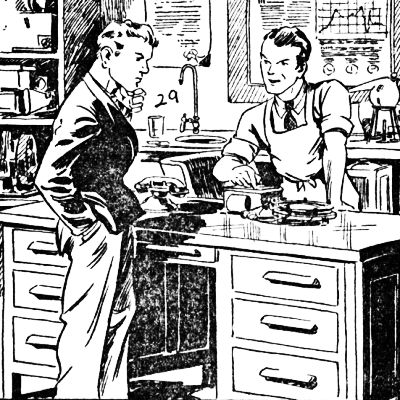 Although the hour was late, Tom decided to return to the laboratory and inspect the vault. There had been a certain sly expression in Anton's eyes which had vaguely disturbed the inventor. It was as if the man were holding something back and grinning over it.