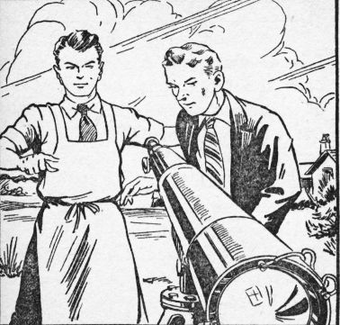 "Hold on, young fellow!" interrupted the youthful inventor with an amused chuckle. "I've nothing like that in mind YET! All I want to do is show you my new 'space eye.'"