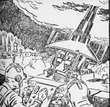 A huge truck transported the planet stone to the shops of the Swift Construction Company. One of the buildings had been cleared of all other work, and in it a very large furnace had been erected to cast the green disk. Powerful mechanisms crushed the meteorite to a fine powder which was dissolved by strong acids, then separated into its various ingredients.