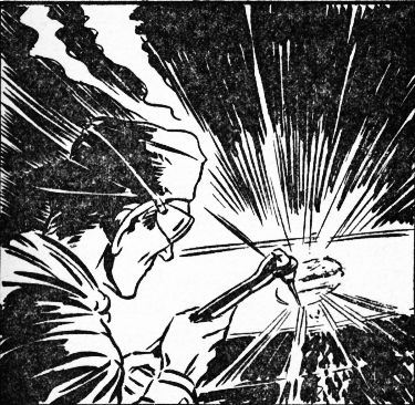 Three days later the stuff had cooled sufficiently for an inspection to be made. A traveling crane slowly hoisted the massive iron lid of the electric furnace. Tom climbed a ladder and peered down.