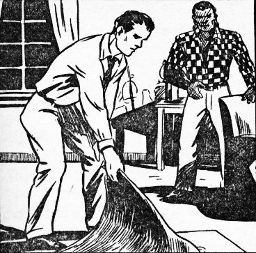 In a few minutes Tom's feeling was proven correct, for the formula dealing with the flexible glass was gone! Koku, when questioned, admitted that he had seen some papers drop from Anton's pocket when he had seized him just outside the laboratory, but the simple giant had paid no attention to them. There followed a frantic search with a flashlight by Tom but there was no trace of the missing documents.