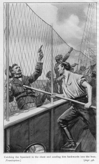 Just then, as Poole turned upon him irritably, the gig touched the gunboat’s side, and the boys sprang on board, to be greeted by the mate and the members of the prize crew, who had moored her well under the guns of the little fort.