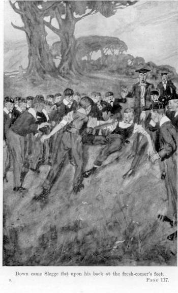 “Look here,” said Slegge, turning again to the lad he had addressed, “don’t you be cheeky, sir, or you’ll find yourself walked down behind the tennis-court some morning to have a first breakfast; and you won’t be the first that I have taught his place in this school.”