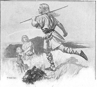 “There is news,” cried the boy excitedly. “I can see the points of spears right away there in the valley. Look, the sun shines upon them and makes them glitter.”
