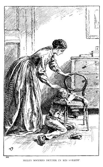 The doctor was silent as the boy went on; his lips were compressed and his brow rugged; but he did not speak, till, with wondering eyes, he saw Dexter turn, go painfully toward where Helen sat with averted face, look at her as if he wanted to speak, but the words would not come, and, with a sigh, he limped toward the door.
