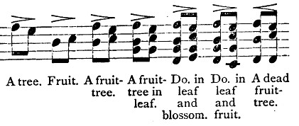 The signification of these chords is by no means arbitrary; but, on the contrary, their application is according to fixed rules and according to æsthetic principles; so that the highest poetry of these people becomes, in the very process of utterance, the finest music; while the utterance of base sentiments, or of fustian, becomes, by the very nature of the language, discordant, or at best vapid and unmelodious.