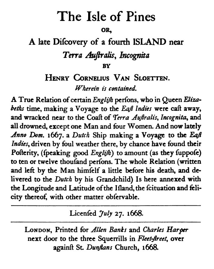 The European connection is also not without interest, for the skit—the first part of the "Isle of Pines," published without name of author—had an extraordinary run.