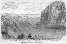 It appeared to me that the hurricane was subsiding; but still our progress was slow and painful. It was, however, an advantage having a beaten path, though that in many places was cut up by the water, and in others, trees and roofs of cottages had been blown across it. I found that we were ascending,—higher and higher up the mountain we got. Lofty rocks appeared on every side,—the lightning seemed to be more vivid,—the crash of the thunder, as it reverberated in rattling peals amid the cliffs, was even louder than before. I remembered my companion’s remark, and felt no fear.