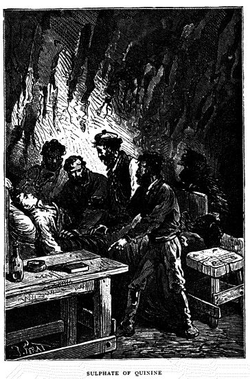 During the five ensuing days Cyrus Harding and his unfortunate companions husbanded their provisions with the most extreme care, eating only what would prevent them from succumbing to starvation. Their weakness was extreme. Herbert and Neb began to show symptoms of delirium.
