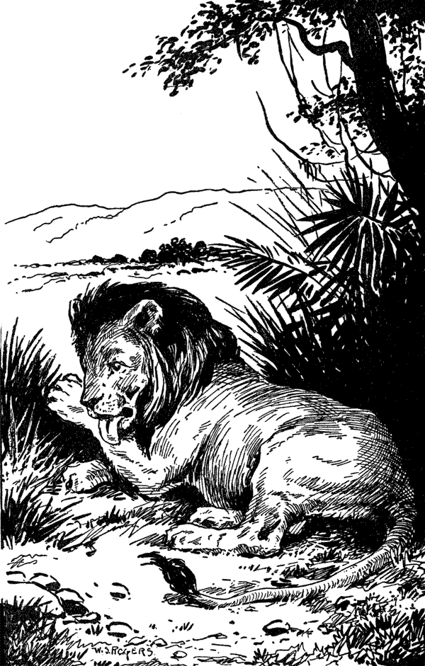 Now please don't imagine, just because these lions growled, that they were cross. They weren't anything of the sort. That was just their way of talking. Your dog barks and growls, and that is his way of speaking. Your cat mews and sometimes growls or "spits," and often purrs, especially when you tickle her ears. And a lion always growls when he talks. When he is angry he roars—that's the difference. And, I almost forgot, lions can purr, too, only it sounds like a buzz saw instead of the way your cat purrs. But then a lion's throat is very big, and so his purr has to be big also.