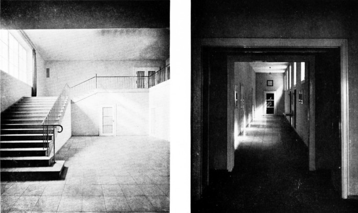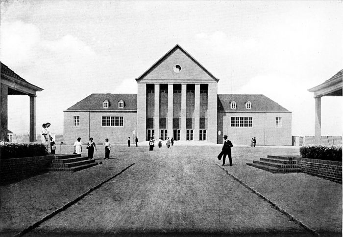 The College itself is a fine example of the value of simplicity and space in architecture. Both without and within, the block of buildings is impressive, this effect being gained by an extreme simplicity of decoration. The most modern methods of heating and ventilating are provided, and there are large sun and air baths.