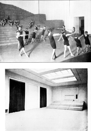 (c) This is not required in the pupil, however valuable it may be as an additional means of self-expression; it is, however, absolutely necessary for the successful teacher of rhythmic gymnastics, who must be able to express, on some instrument—most conveniently the piano—whatever rhythms, simple or compound, he may wish to use in the training of his pupils. This subject, therefore, naturally forms an important part of the normal course at the Hellerau College, since this course is planned to meet the needs of students preparing for the teaching diploma in Eurhythmics. Here, too, Jaques-Dalcroze has his own system, with which he obtains results often remarkable, but, as in the case of the ear-training, this is a detail not peculiar to the method as a whole.