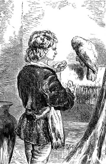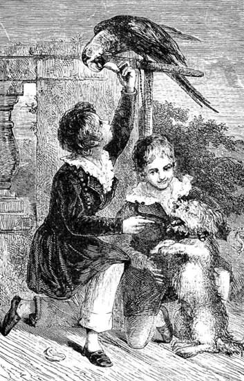 They were here interrupted by the appearance once more of Master Herbert, who brought a most tempting piece of cake in his hand. Going up to the cockatoo, he said, "I suppose I needn't offer you this, Cockatoo. You are determined not to be friends." The cockatoo put out his claw for it, and took it gently from Herbert's hand, who could not fail to see there was a marked difference in the bird's appearance.