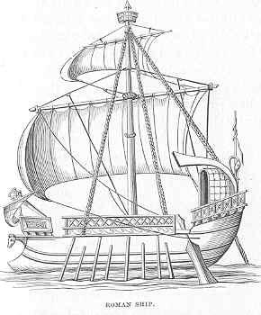 We have no very authentic details of the minutiae of the form or size of ancient ships, but antiquarians have collected a vast amount of desultory information, which, when put together, enables us to form a pretty good idea of the manner of working them, while ancient coins and sculptures have given us a notion of their general aspect. No doubt many of these records are grotesque enough, nevertheless they must be correct in the main particulars.