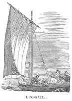 Mr W.H.G. Kingston gives a graphic description of a Portuguese craft which it has never been our fortune to see. He calls it the Lisbon bean-pod, from its exact resemblance to that vegetable, and affirms it to be the most curious of European craft, which we can readily believe. “Take a well-grown bean-pod,” he says, “and put it on its convex edge, and then put two little sticks, one in the centre and one at the bows, raking forward, for the masts, and another in the bows, steeving up, for the bowsprit, and another astern for a boomkin or outrigger, and then you have before you the boat in question.” These boats carry a lateen sail, sail very fast, and are much used on the waters of the Tagus as fishing-boats and trawlers.