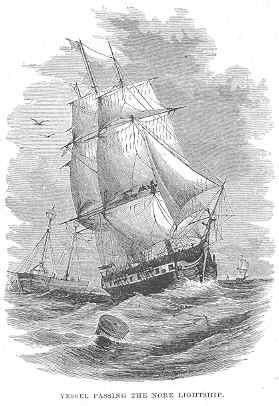 Soon after this a small brig was seen right under the starboard bow. As usual with these small coasters, she was showing no light and keeping no look-out, and but for the anxious vigilance exercised on board the big ship, the brig would have been under the waves in two minutes more. Her escape was narrow enough, and nothing short of the instant stoppage of the engines and actually reversing the screw saved her from swift destruction. She drifted from under the starboard paddle within twenty yards—quite close enough to enable Captain Harrison to speak to her master, and to express a very strong opinion on his style of navigation and conduct generally.