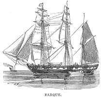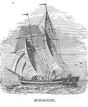Off the coast of Portugal we meet with many different kinds of craft, of which the trading schooners differ from almost any other kind of vessel. Broad in the beam, and short in the counter, some are rounded at the stem, some nearly square. They are decked, and are from forty to one hundred tons burden. They are peculiarly rigged, having only lower masts stepped at different angles. The gaffs of the fore-sail, as well as the main-sail, can be raised to different heights. They have fore stay-sail, jib and flying jib, gaff top-sails, and a large square sail and square top-sails. On the whole, they are ungainly-looking craft in the extreme; but they are very capable sea-boats, and make voyages as far as South America.