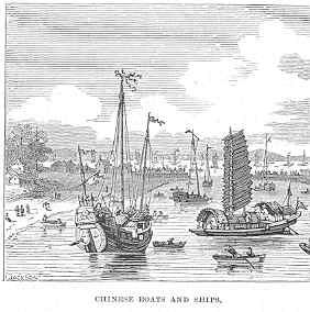 indicated in their ships, which in all probability have not altered in any material regard for centuries. A Chinaman would be as slow to change the shape of his junk as his shoes, or the length of his pigtail. And a strange, old-world, semi-barbarous look a Chinese junk has.