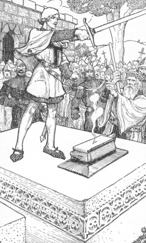 "The king is not here," said the archbishop, "but God will make him known. Meantime, let ten good knights keep watch over this sword."[19]