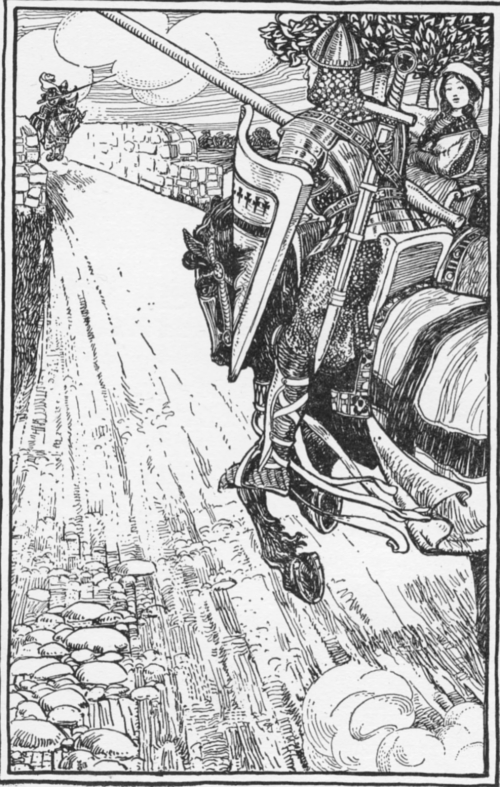 "She greeted me kindly, and after a time she began to love me. Soon I wondered whether I was fit to see the Holy Grail. I thought perhaps I was one of those who were pursuing a wandering fire. And then the people of the castle begged me to marry their princess, and[251] be their lord and live a happy and easeful life.