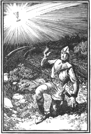 "One night I awoke, and thought longingly of the Holy Grail. Whether I were fit to see the vision or not, I had at least sworn to seek it for a year and a day. And yet, I had not tried two months! I rose hastily, dressed, and left the castle. Then for many days I prayed and mourned. At last I sought a holy hermit, and told him all I had done and thought since I had left Arthur's Court.