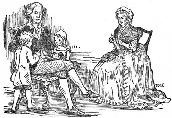 Count Rochambeau had told a pretty story about his journey from Newport with General Washington. One evening, as they passed through a large town, the people came out to greet their General. Throngs of children carrying torches crowded about him, touching his hands and calling him "Father." He was very kind and gentle to all these people, but the patriotism of the children pleased him most. He said[Pg 72] Great Britain could never conquer a country whose children were taught to be loyal.