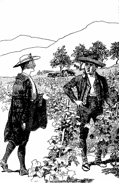 En este momento se presentó en la viña un hombre alto y hermoso. Este hombre dijo:—Nunca está Vd. satisfecho del tiempo. Siempre hace frío o calor, es muy húmedo o muy 25 seco. ¿Puede Vd. hacer un tiempo mejor?—Sí,—respondió el hombre rico,—yo puedo hacer mejor tiempo.—Pues bien,—dijo el extranjero,—el año que viene debe Vd. hacer el tiempo para sus viñas.