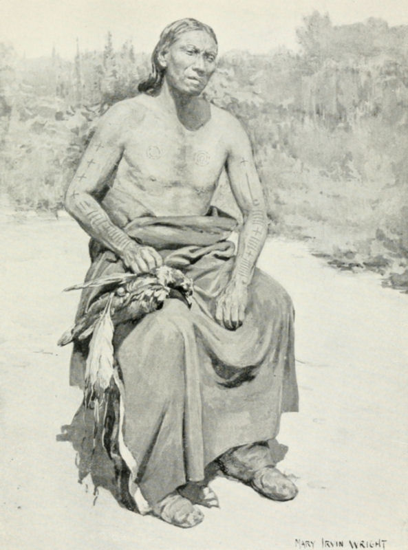 The power to fly has always inspired Indians of all tribes and of all degrees of civilization with wonder and reverence. The bird chiefs have their own places in Indian myths. Owl is chief of the night; Woodpecker, with his ceaseless tattoo on the trees, is chief of the trees; Duck is chief of the water; but Eagle is chief of the day. It is always Eagle who is chief of the birds, even though Wren may outwit him in a tale told by the fire glimmering in the tepee, when the story tellers of the tribe tell of the happenings in the days “way beyond.” It is Eagle who inspires admiration, and becomes the most sacred bird.