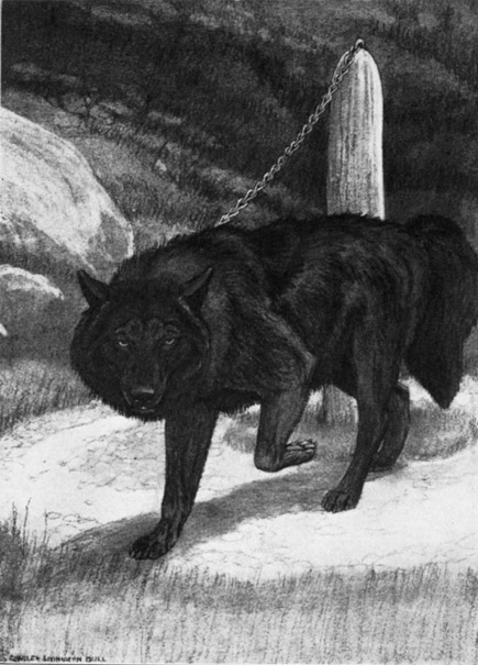 “He hates me,” he continued, turning to us, “because of his ancestors. In him is the blood of a Great Dane noted for its strength, size and ferocity, a fierce brute which I brought over the mountains with me many years ago. Pluto’s mother was a pure black wolf of a mean disposition, and his father the half-breed son of a Great Dane and a she-wolf. He is the fiercest and most bloodthirsty beast in the whole pack, he hates me with the intense hatred of his wolfish nature, he hates me because he knows that I am the master of the pack, the real leader, and he is jealous. Since his puppy days he has watched for a chance to kill me; twice he nearly succeeded—the time will no doubt come when it will be his life or mine. Yet because of his wonderful strength, endurance and sagacity, I could almost love him.