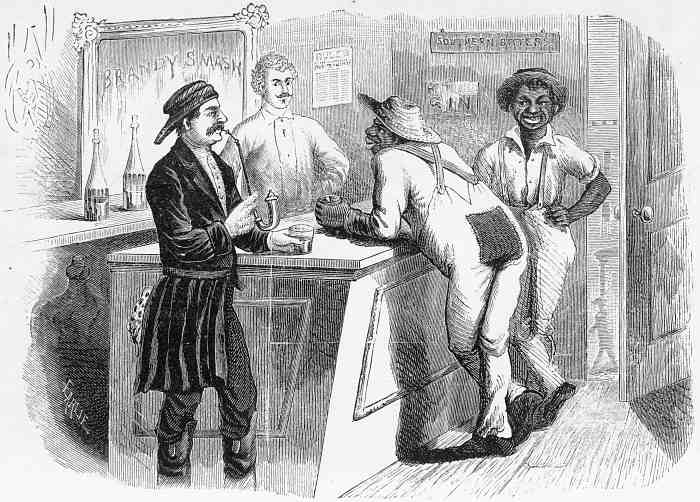 The day passed in a continual wrangle. Madam Imbert could hardly get away from Mrs. Maroney long[Pg 260] enough to eat her meals. Mrs. Maroney and Josh. dealt exclusively in brandy. Toward evening Josh. proclaimed his intention of "raising" the money, and starting with it that night for the West. He would hide himself until Maroney got out of jail, when he would return and deliver the money over to him. Josh. was sublime in the purity and philanthropy of his motives. He did not want a cent of the money; not he! but he could not consent to see his brother-in-law swindled while he stood by and calmly looked on, without making an effort in his behalf. No! this he could not do. To his own serious inconvenience, he would voluntarily tear himself from his family, impose upon himself the task of becoming the watch-dog of Nat.'s treasure, and for a time lose himself in the wilderness of the West. Madam Imbert thought his would be a clear case of "Though lost to sight, to memory dear," but did not say so.