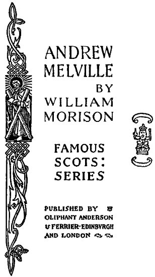 Melville was only two years old when his father was killed fighting among the Angus men on the field of Pinkie, a battle which made many orphans; and in his twelfth year he lost his mother, when he was taken by his eldest brother to Maryton Manse, and as tenderly cared for by the minister and his wife as though he had been a child of their own. One of the sons of the manse was James Melville, between whom and his 'Uncle Andro' the most endeared affection sprang up. The two lived in each other's lives and shared each other's work, alike as teachers in the two principal Universities, and as leaders in the Council of the Church. Corque unum in duplici corpore et una anima—so the elder, after the younger's death, described their relationship.