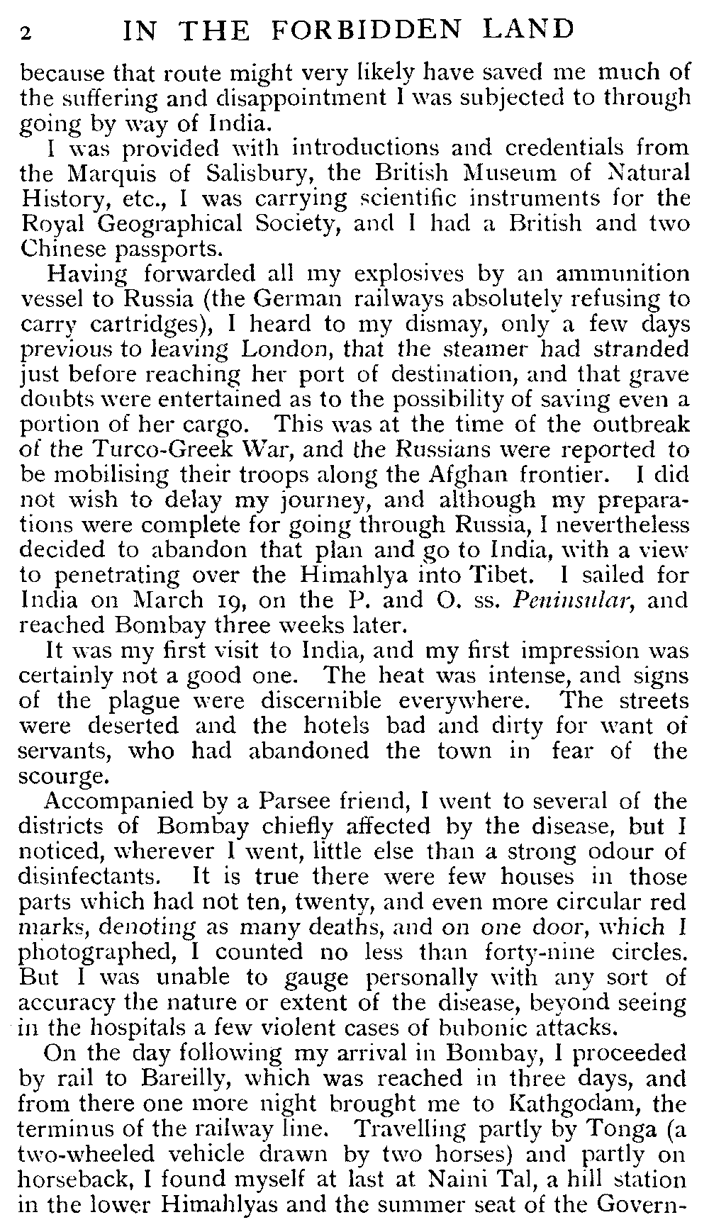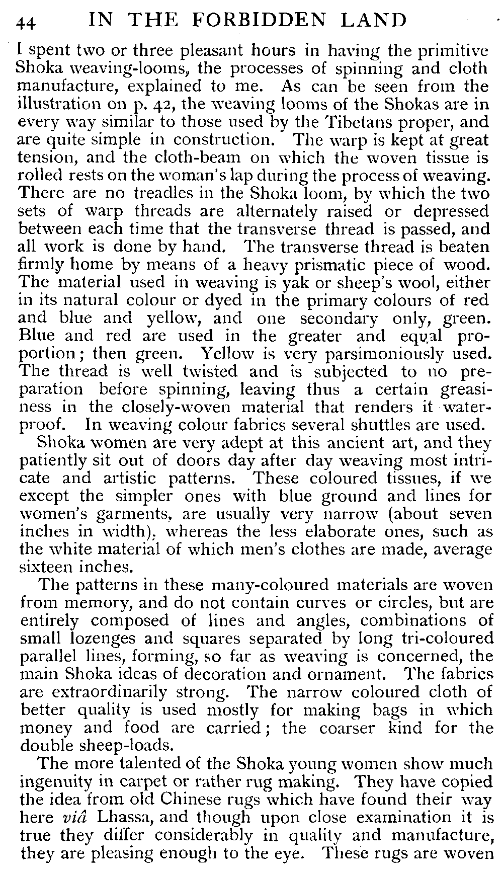 In this book I have set down the record of a journey in Tibet undertaken by me during the spring, summer and autumn of 1897. It is illustrated partly from my photographs and partly from sketches made by me on the spot. Only as regards the torture scenes have I had to draw from memory, but it will be easily conceded that their impression must be vivid enough with me.