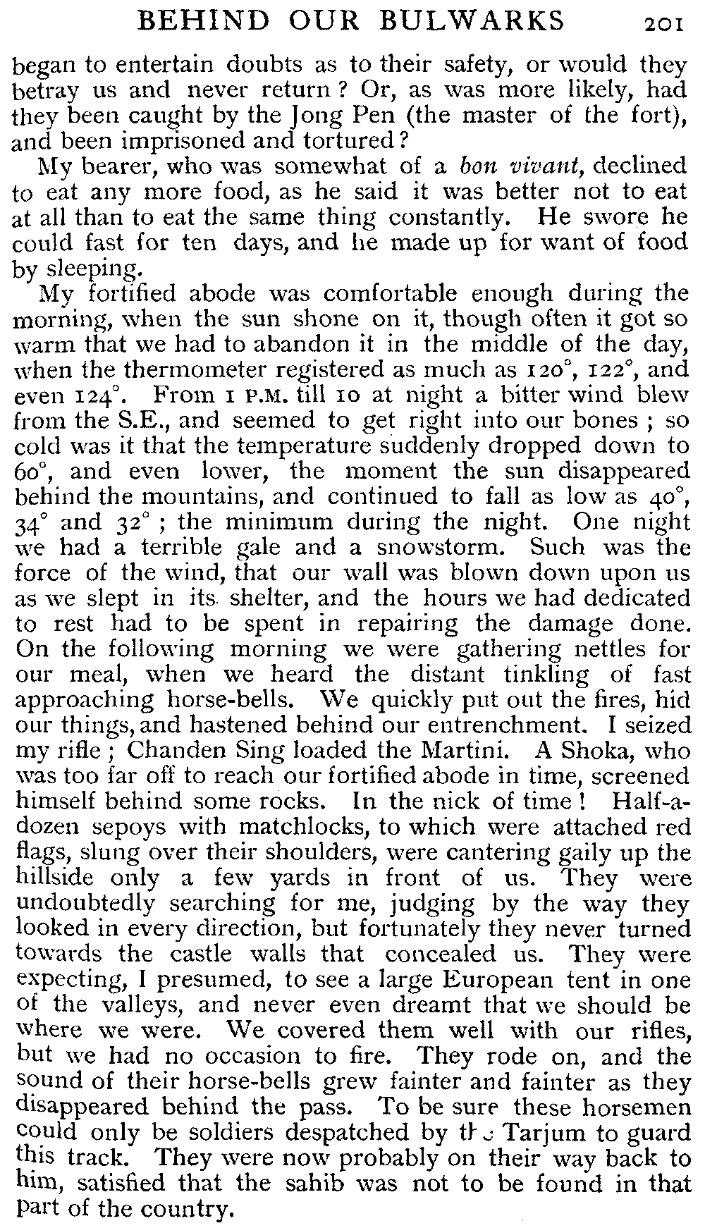 | [xv]XXXV | All that remained of my men's provisions—The plan to enter the fort—Appearance of yaks—A band of brigands—Erecting fortifications—Changes in the temperature—Soldiers in search of us | 198-201 |