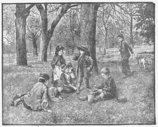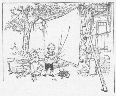 "Throw the flowers on the grass, Sophie! we really can't begin again now!" declared Marie. "I'm going to teach the girls a new game. Now, children, stand in a row. Now hold out your frocks and sing with me." And Marie, leaning against a tree, proceeded to give her orders, and, being somewhat blunt, did not notice the grieved look on Sophie's face as she thought of her wasted flowers.