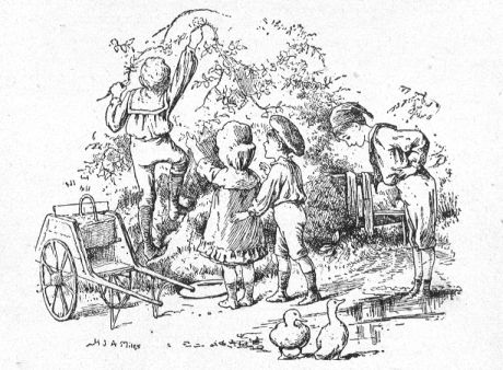 "Oh, yes, dear Adela!" said Sophie, brightening. She was a fair, pretty child, with a shady hat tied under her dimpled chin; and seeing Adela stooping to pick up the despised flowers, her spirits rose, and she joined the others in their game under the tree, and danced and sang with the rest.